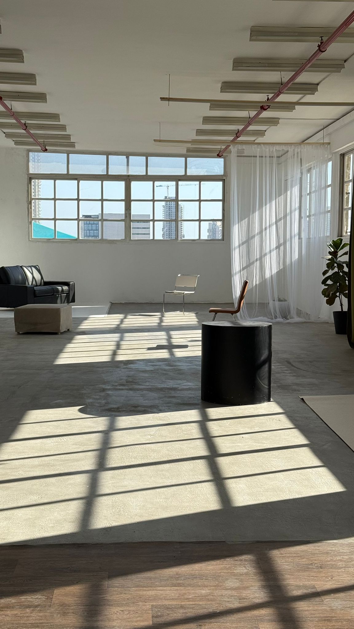 - Просторный зал с большими окнами на две стороны и трехметровой циклорамой
